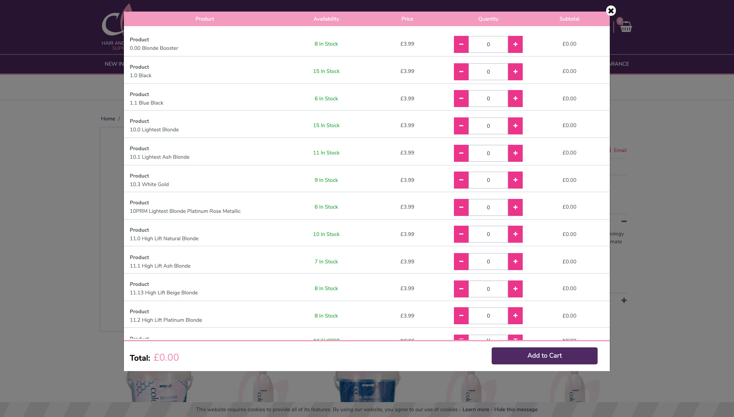 Some of the products such as hair colouring are available in a wide variety of options, and trade customers like to stock up and purchase quantities of each variation in bulk.