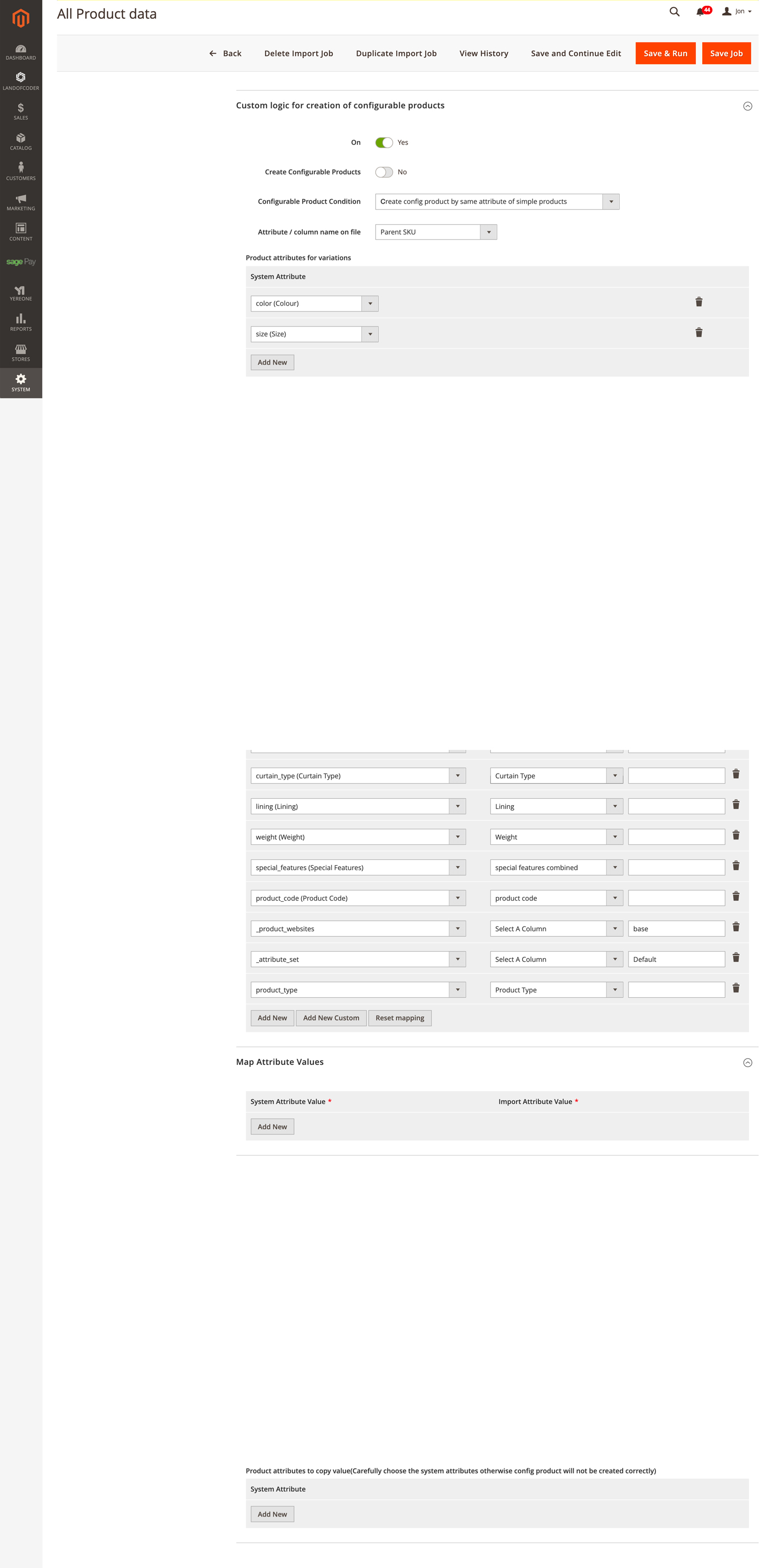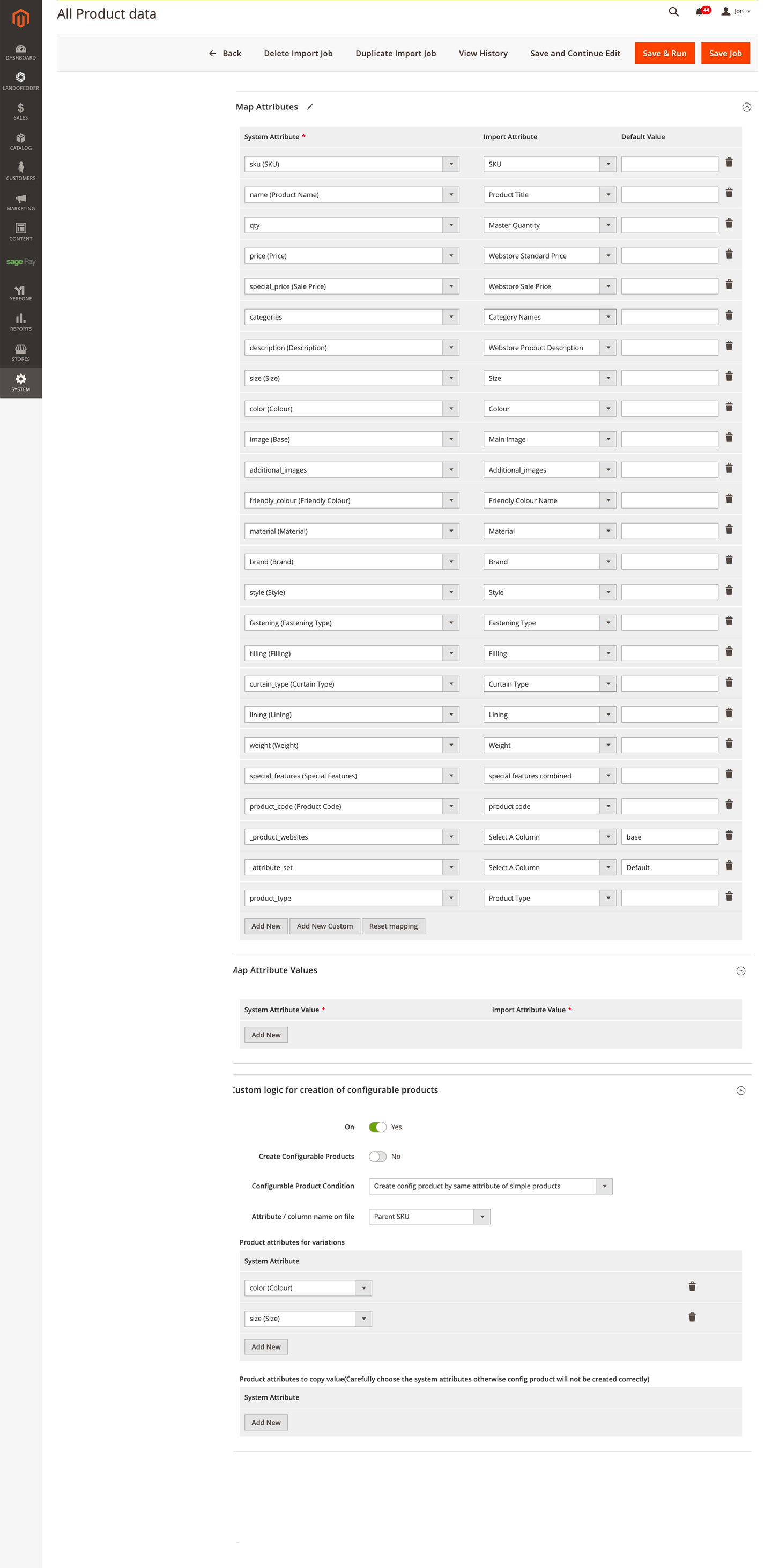 The feature that sets this extension apart from the rest, is how it handles the creation of configurable products based on numerous attributes. This was important to Musbury Fabrics as the majority of their products have a parent product which holds the product name, images and general description and isn’t purchasable in itself, but then has variations based on size and/or colour that are the purchasable options, each with their own images and prices.