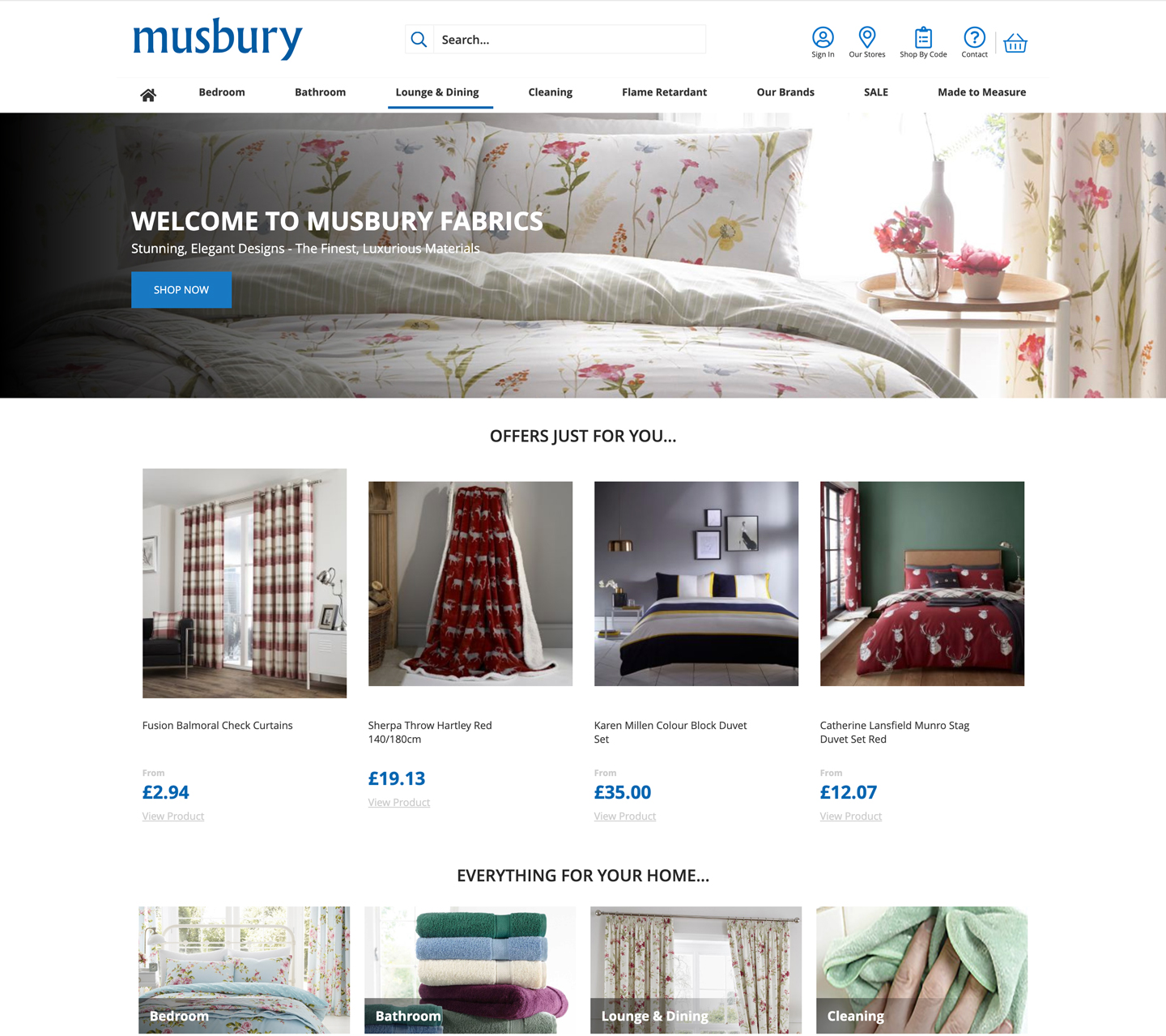 Musbury Fabrics are a well established brand and retailer of textiles and this website build was commissioned as part of a complete overhaul of inventory management and sales channels.