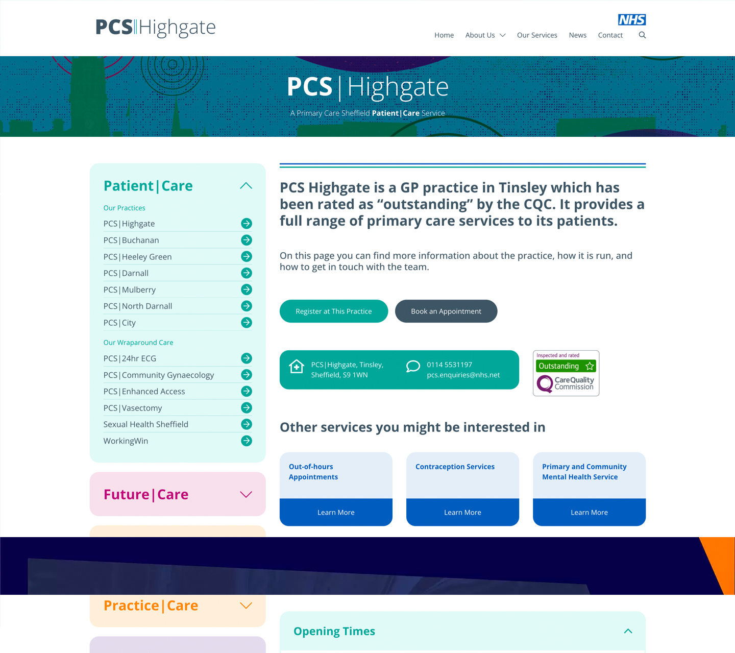 The final outcome is a source of pride for everyone involved, working with NHS practices who provide vital care to those in need, and ensuring that their patients can effortlessly access the website, explore information about the group and individual practices, and make informed decisions about their healthcare choices within the Primary Care Sheffield network.
