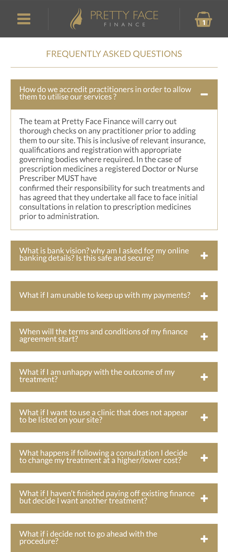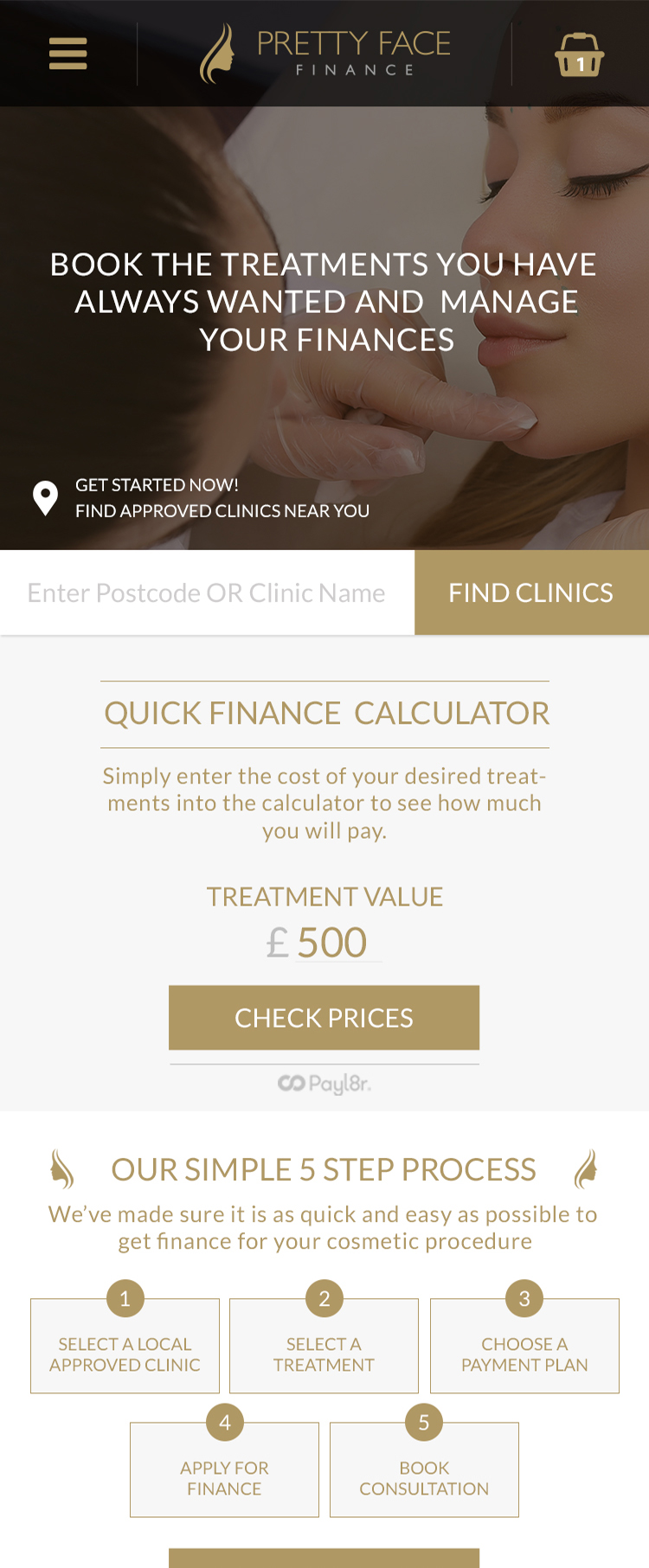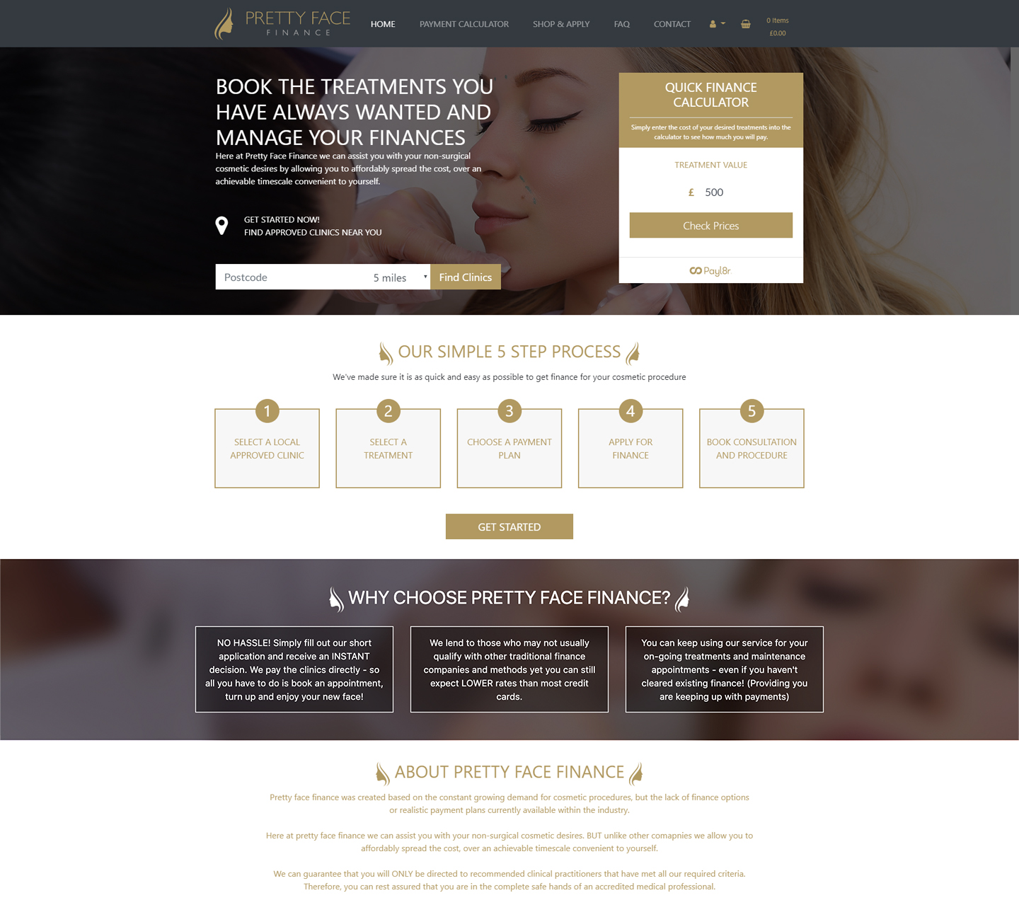 As the finance provider for over 300 clinics across the UK, we were excited to be tasked with the redesign and redevelopment of the Pretty Face Finance platform.